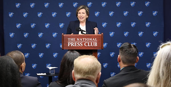 Photo of AFT President Randi Weingarten addressing TEACH 2023