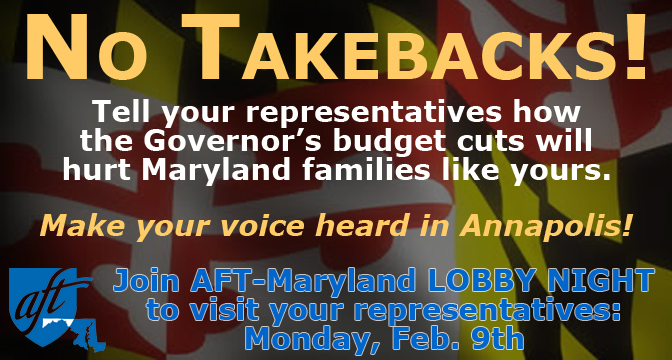 AFT-Maryland joins the Metropolitan Baltimore Council AFL-CIO for their annual Night in Annapolis: Monday, March 23, 2015 at 6:00 p.m.